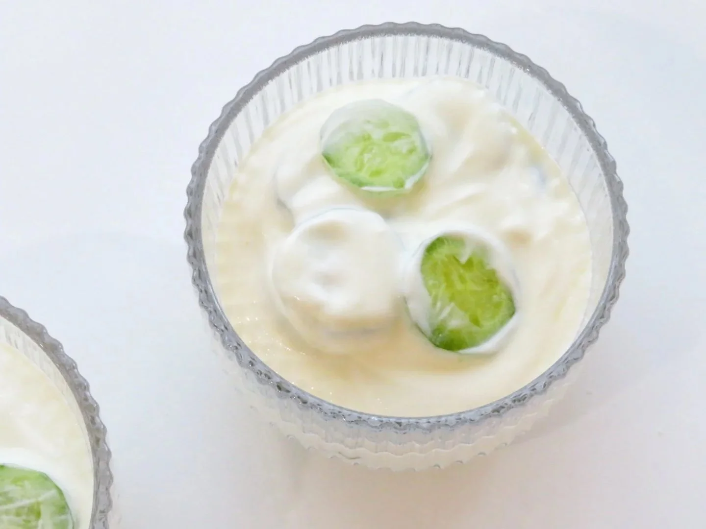This garlic, cucumber and yoghurt salad can be enjoyed as a savoury snack or served as a side.