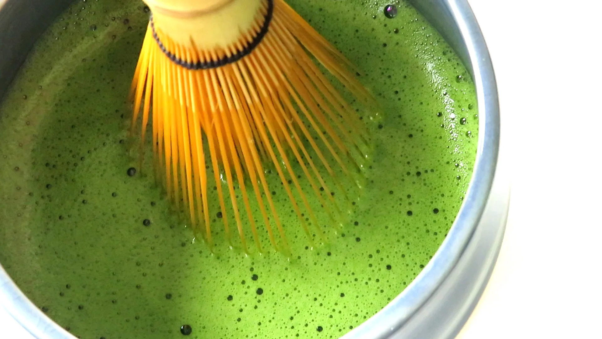 Use the chasen to whisk the matcha powder and hot water together. Being careful not to brush or rub your chasen against the chawan, whisk in a back and forth “W” or “M” shape. Focus more on using the wrist and not the arm to make this movement. You will need to whisk rapidly for 20-30 seconds in this motion until a delicate and frothy layer of foam has developed on the surface of the matcha.